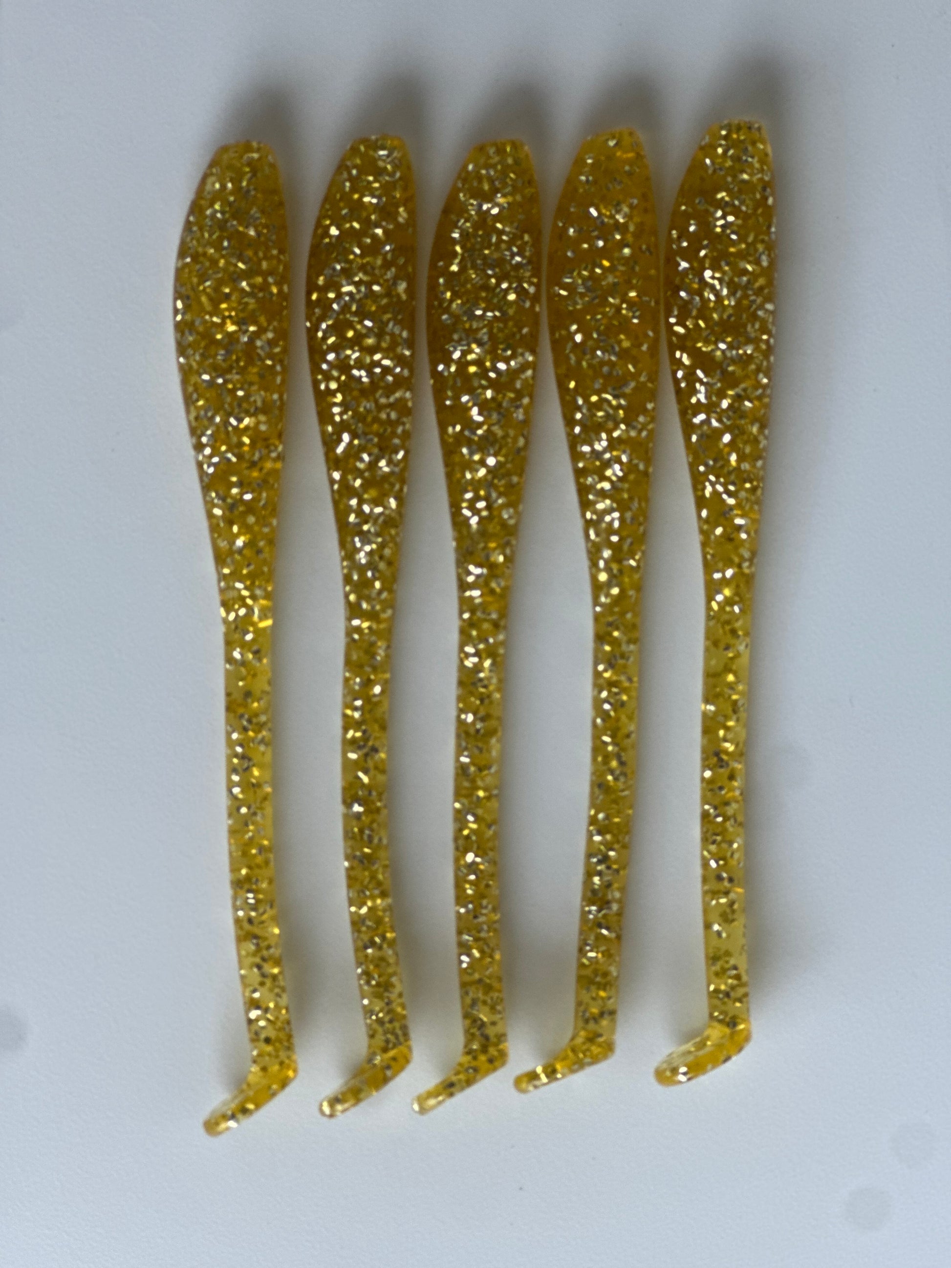 “Golden Ticket “ Soft Plastic Fishing Lures (10-Pack) – 5.5” Gold Glitter Paddle Tail for Trout, Redfish & Flounder