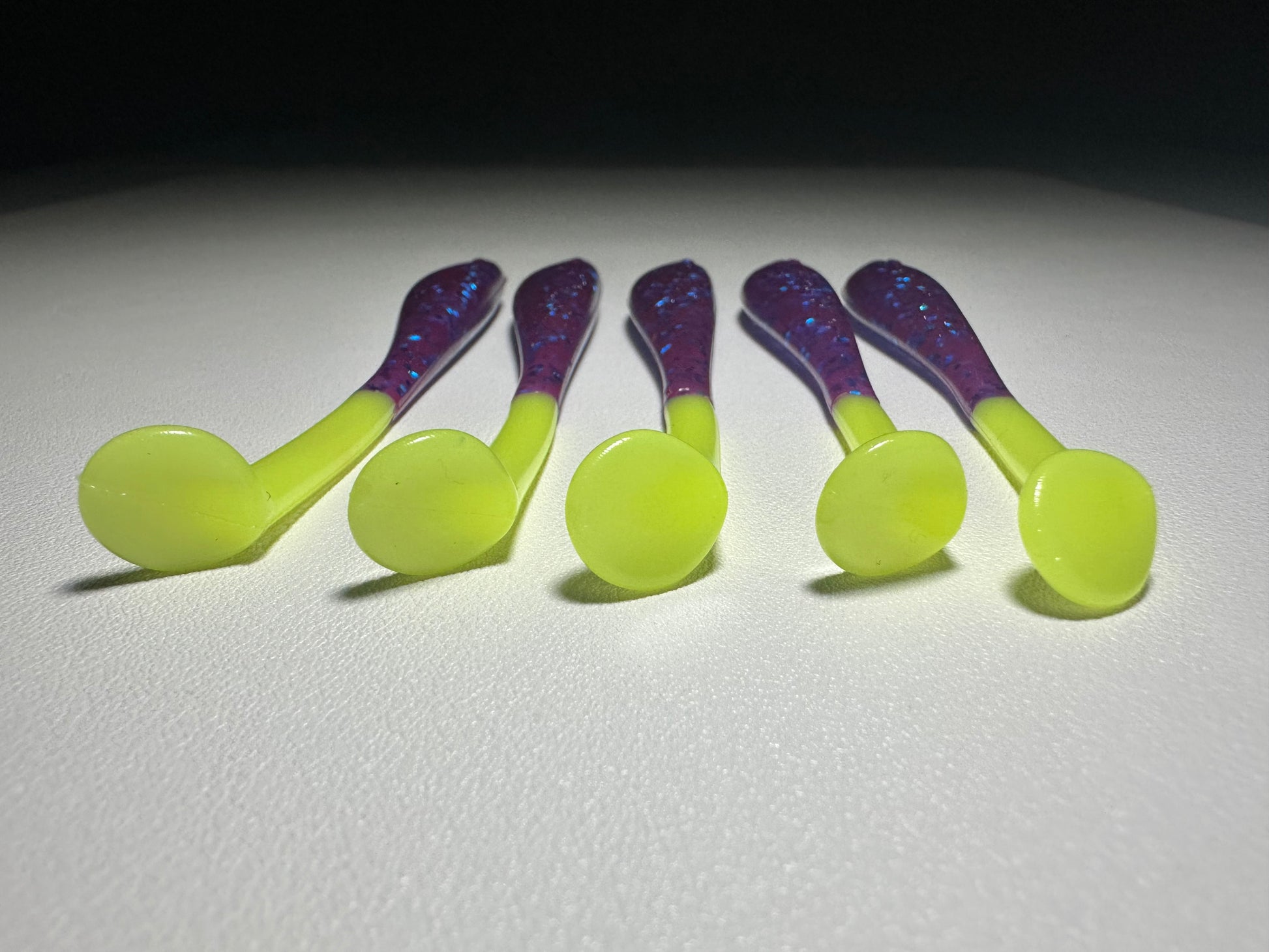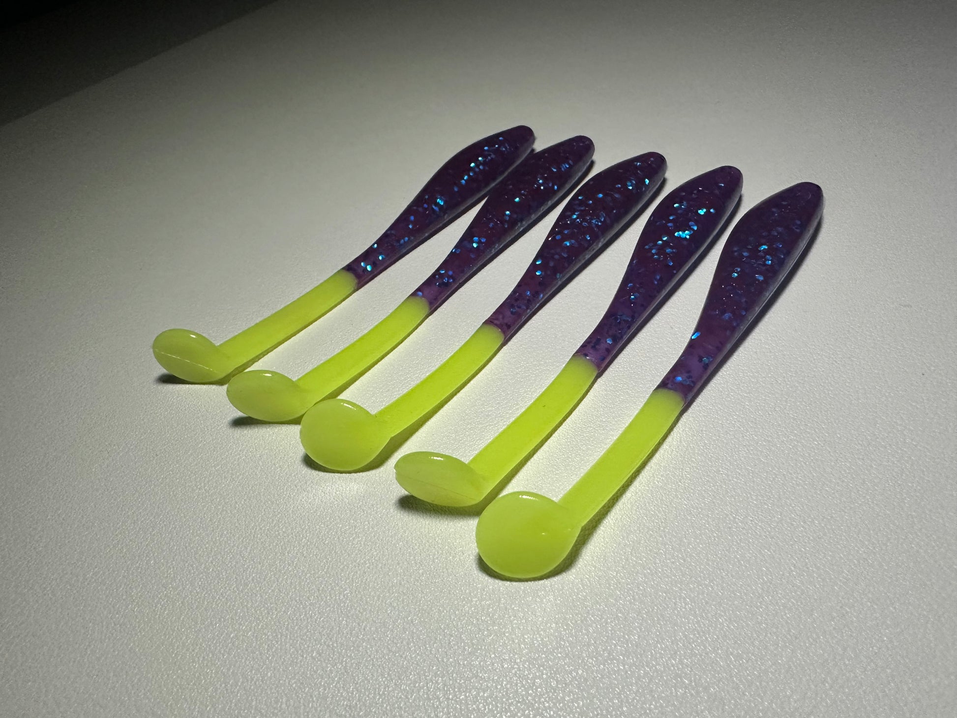 The color pattern—purple body with a chartreuse tail—offers strong visual contrast that stands out in dirty or clear water. Finished with a sweet watermelon scent, it encourages fish to bite and stay engaged longer.