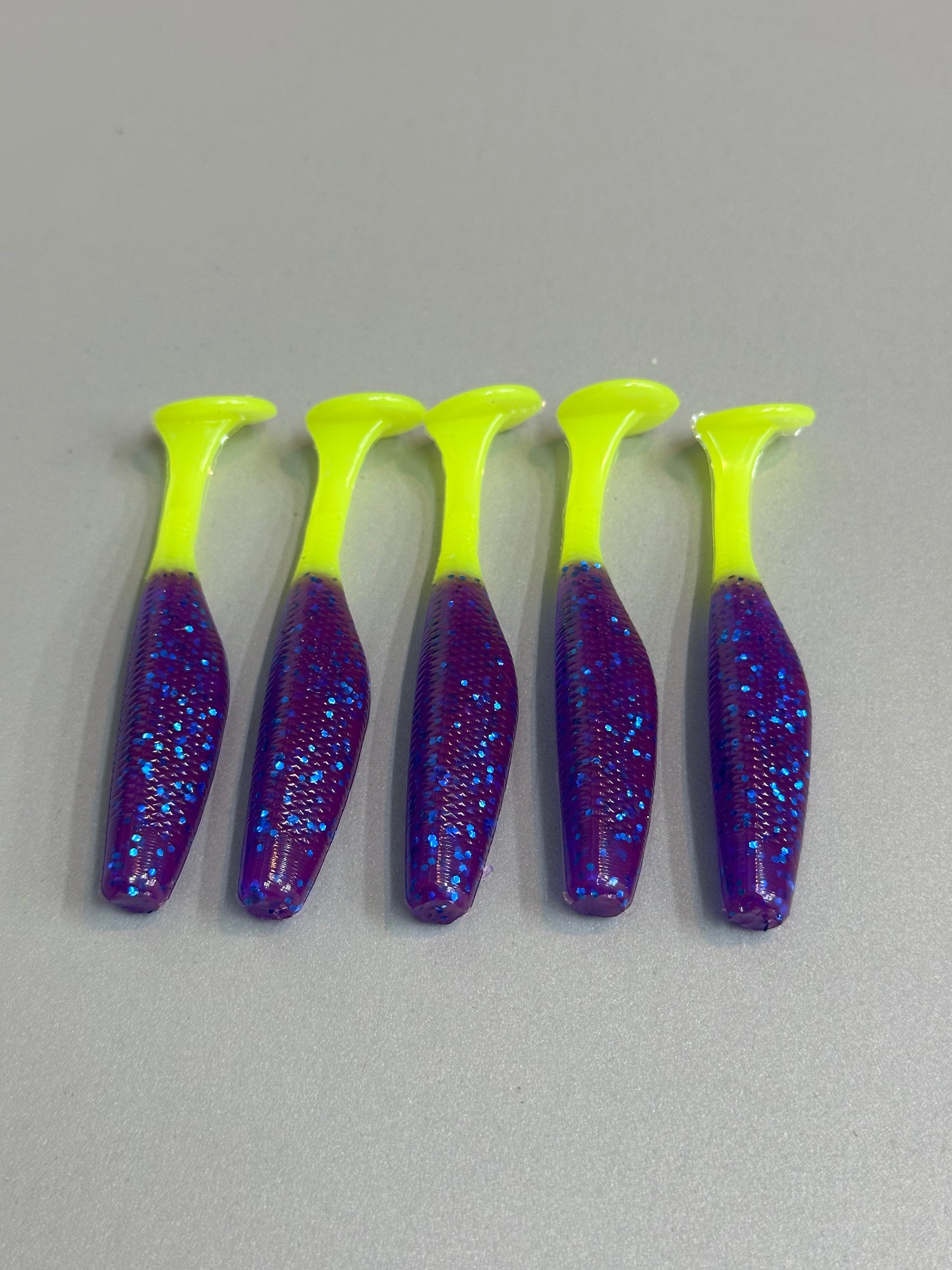 Sancho 3.8” Paddle Tail – Purple & Chartreuse (5 Pack)