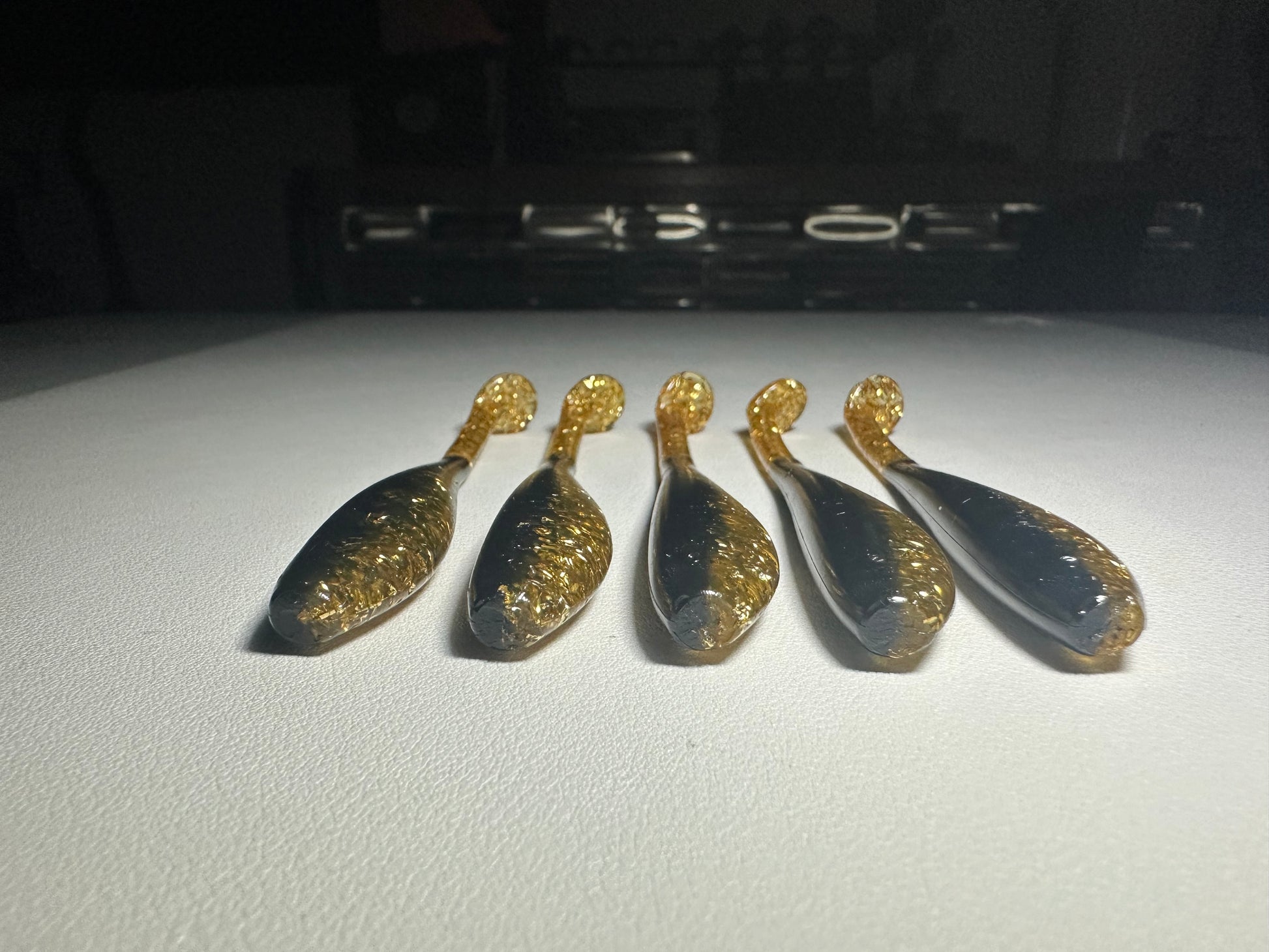 The color pattern—solid orange on top with a white body and a sparkly gold tail—creates natural contrast that remains visible in dirty or clear water. Finished with a sweet watermelon scent, it encourages fish to bite and stay engaged longer.